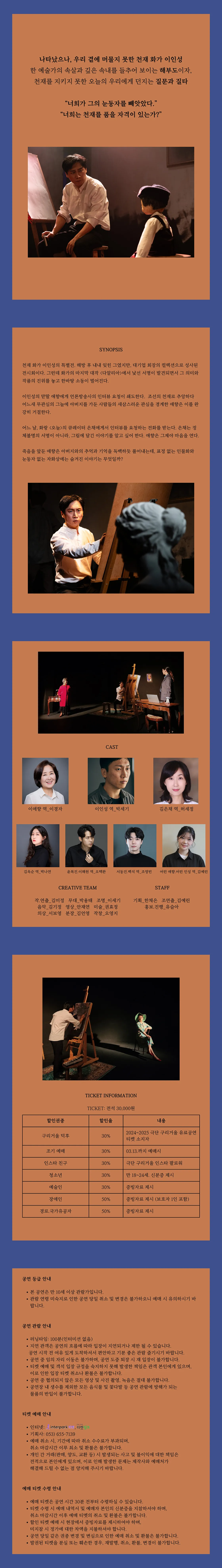 해당 공연은 공연예술통합전산망에서 제공되었으며, 통신판매의 당사자가 아니므로 상품의 예약, 이용 및 환불 등 거래와 관련하여 틱스코리아는 일체 책임을 지지 않습니다.