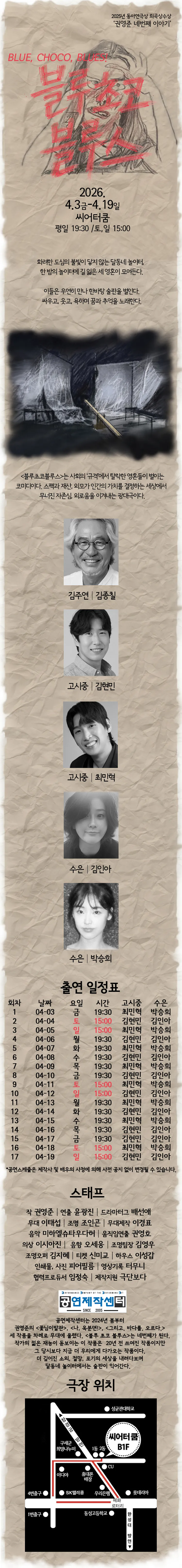 해당 공연은 공연예술통합전산망에서 제공되었으며, 통신판매의 당사자가 아니므로 상품의 예약, 이용 및 환불 등 거래와 관련하여 틱스코리아는 일체 책임을 지지 않습니다.
