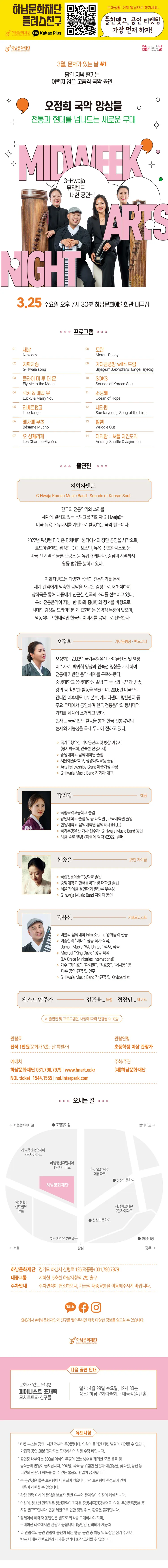 하남문화예술회관 문화가 있는 날 #1 오정희 국악 앙상블: 전통과 현대를 넘나드는 새로운 무대 [하남]