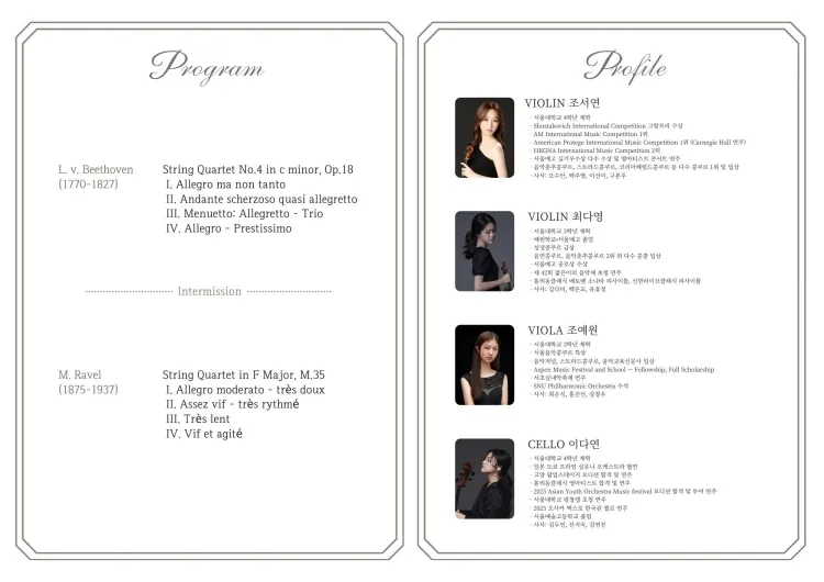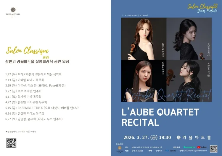 • 라율아트홀 살롱클래식, L’Aube Quartet (로브 콰르텟) Recital라율아트홀 살롱클래식, L’Aube Quartet (로브 콰르텟) Recital