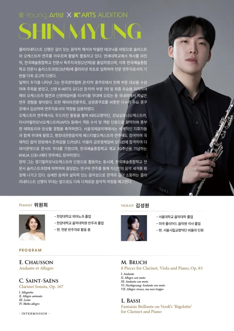 信 Young Artist X K'ARTS Audition 수상자 리사이틀: 클라리네티스트 신명