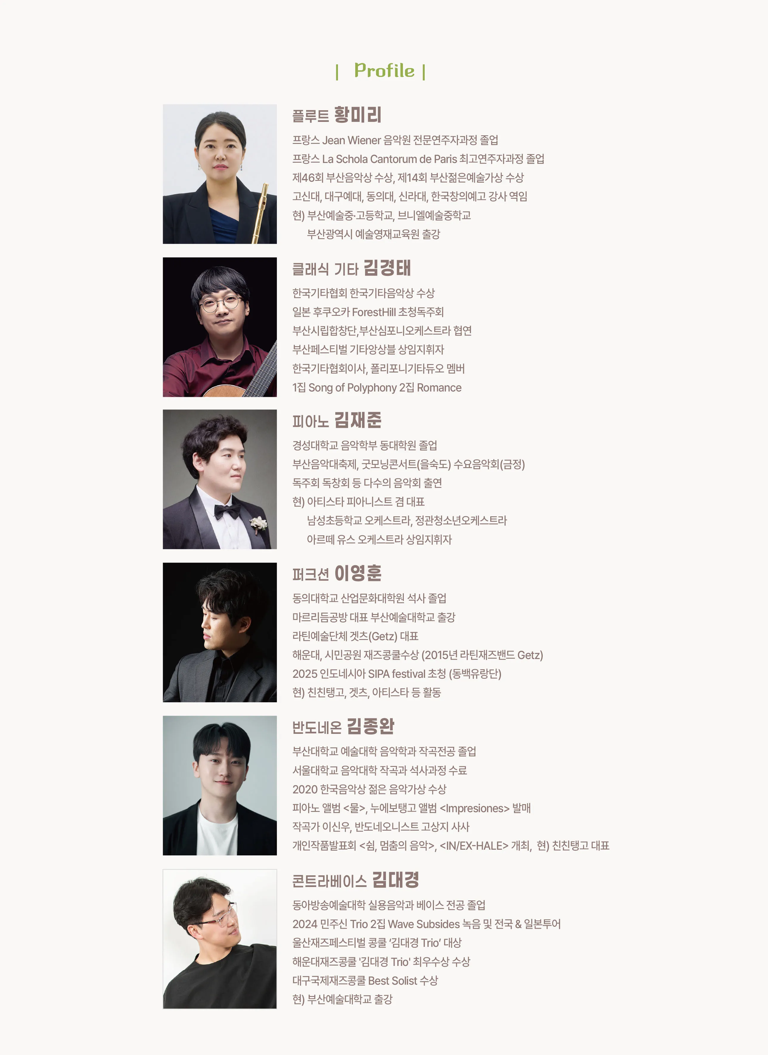 황미리, 김경태, 김재준, 이영훈, 김종완, 김대경