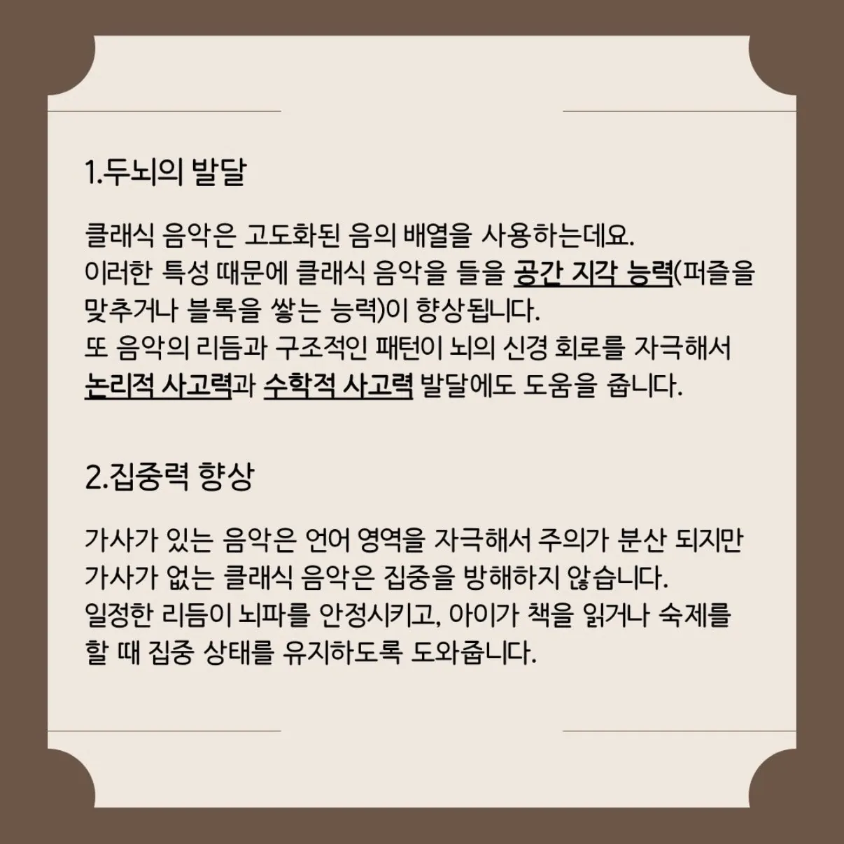 - 아이들이 클래식 음악을 들으면서 집중력을 기르고 정서 안정이 돼요!