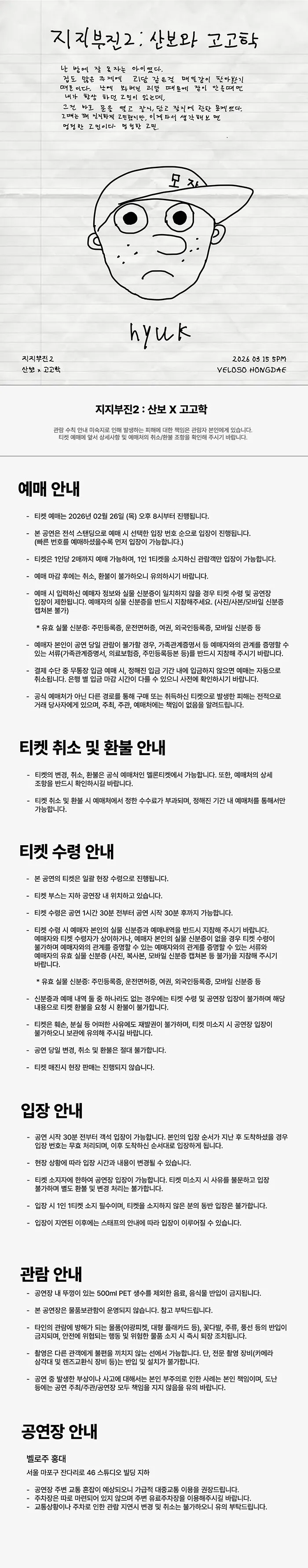 해당 공연은 공연예술통합전산망에서 제공되었으며, 통신판매의 당사자가 아니므로 상품의 예약, 이용 및 환불 등 거래와 관련하여 틱스코리아는 일체 책임을 지지 않습니다.