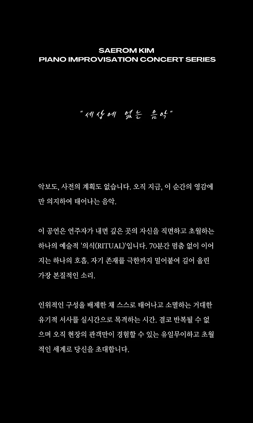 • 김새롬 즉흥 피아노 콘서트 VOL.10: Universe of Love김새롬 즉흥 피아노 콘서트 VOL.10: Universe of Love김새롬 즉흥 피아노 콘서트 VOL.10: Universe of Love김새롬 즉흥 피아노 콘서트 VOL.10: Universe of Love김새롬 즉흥 피아노 콘서트 VOL.10: Universe of Love