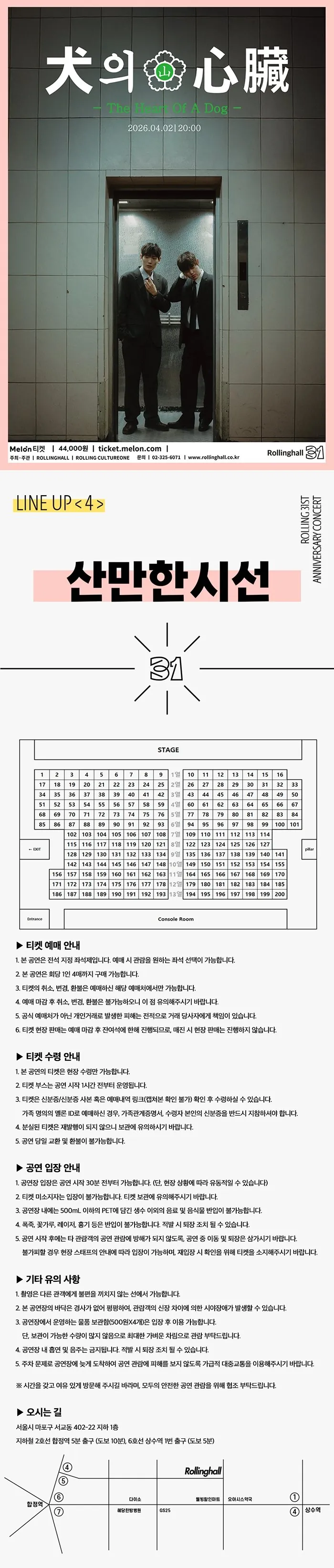 • 롤링 31주년 기념공연, 산만한시선 단독 콘서트: 개의 심장