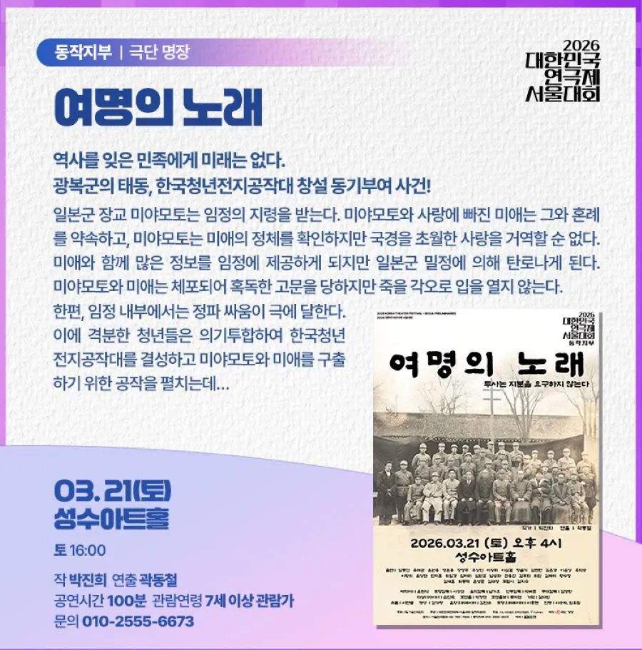 • 대한민국연극제 서울대회, 여명의 노래대한민국연극제 서울대회, 여명의 노래