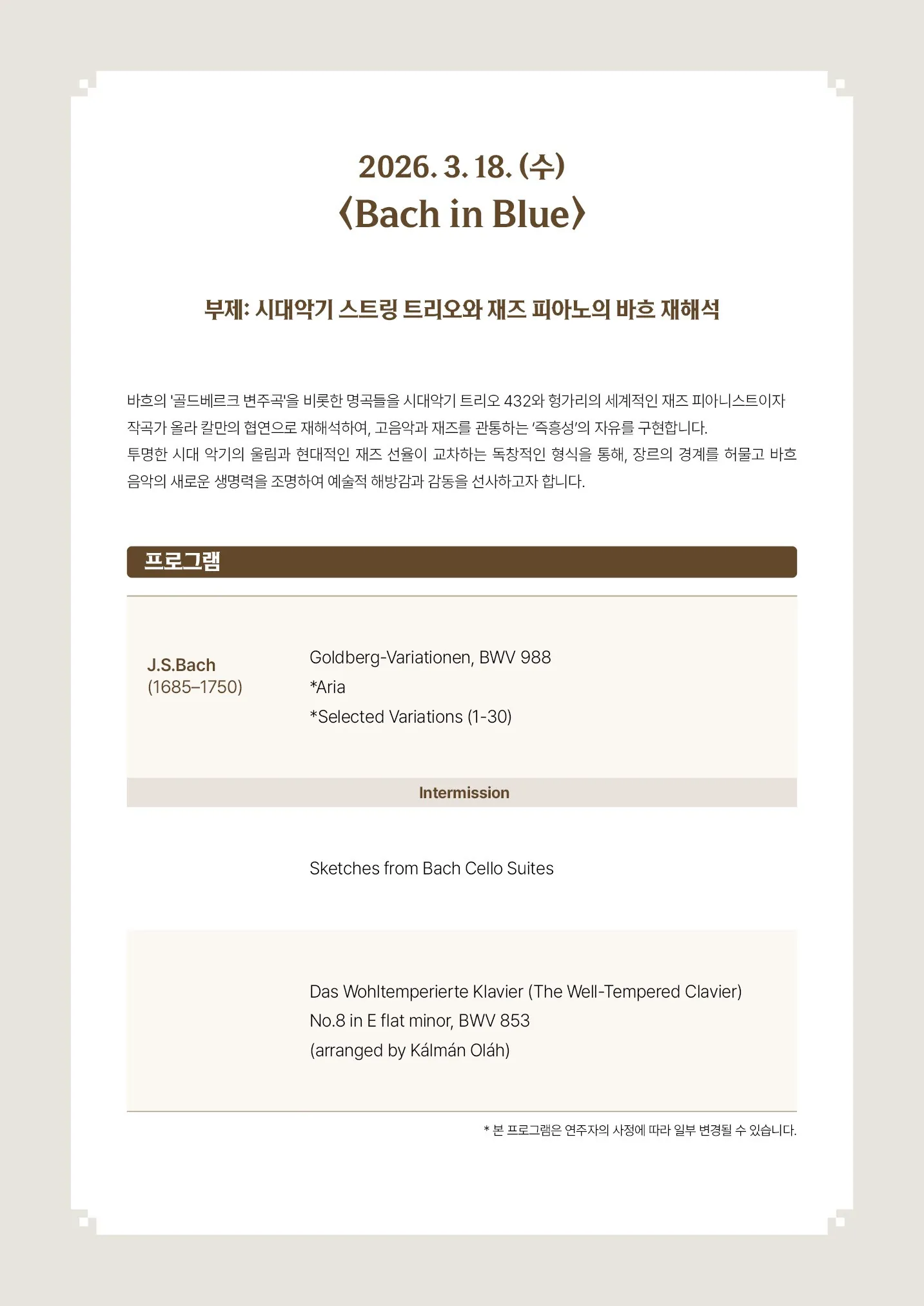 • 서리풀 고음악 시리즈, Bach in Blue서리풀 고음악 시리즈, Bach in Blue서리풀 고음악 시리즈, Bach in Blue