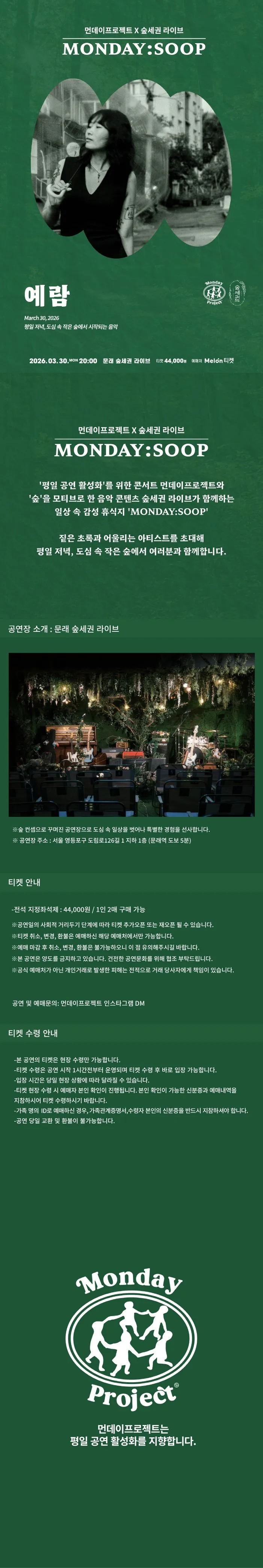 • 먼데이프로젝트X숲세권 MONDAY: SOOP, 예람 단독 콘서트