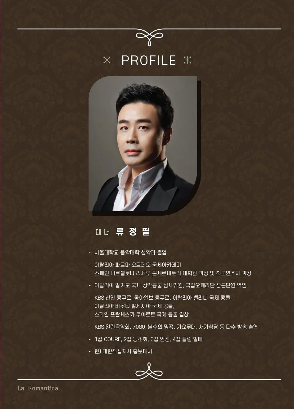 • 제20회 스페셜 아티스트, La Romantica: 테너 류정필의 월드뮤직 세계로 가다 [부산]제20회 스페셜 아티스트, La Romantica: 테너 류정필의 월드뮤직 세계로 가다 [부산]제20회 스페셜 아티스트, La Romantica: 테너 류정필의 월드뮤직 세계로 가다 [부산]제20회 스페셜 아티스트, La Romantica: 테너 류정필의 월드뮤직 세계로 가다 [부산]