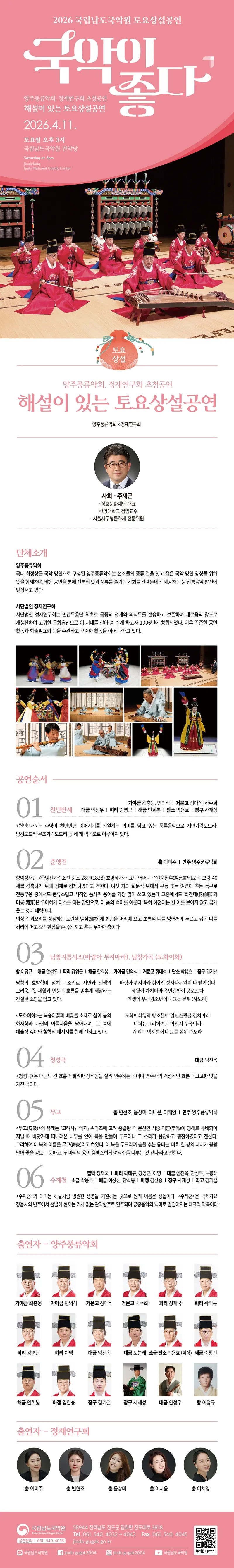 • 국립남도국악원 토요상설: 국악이 좋다, 양주풍류악회 X 정재연구회 초청공연
