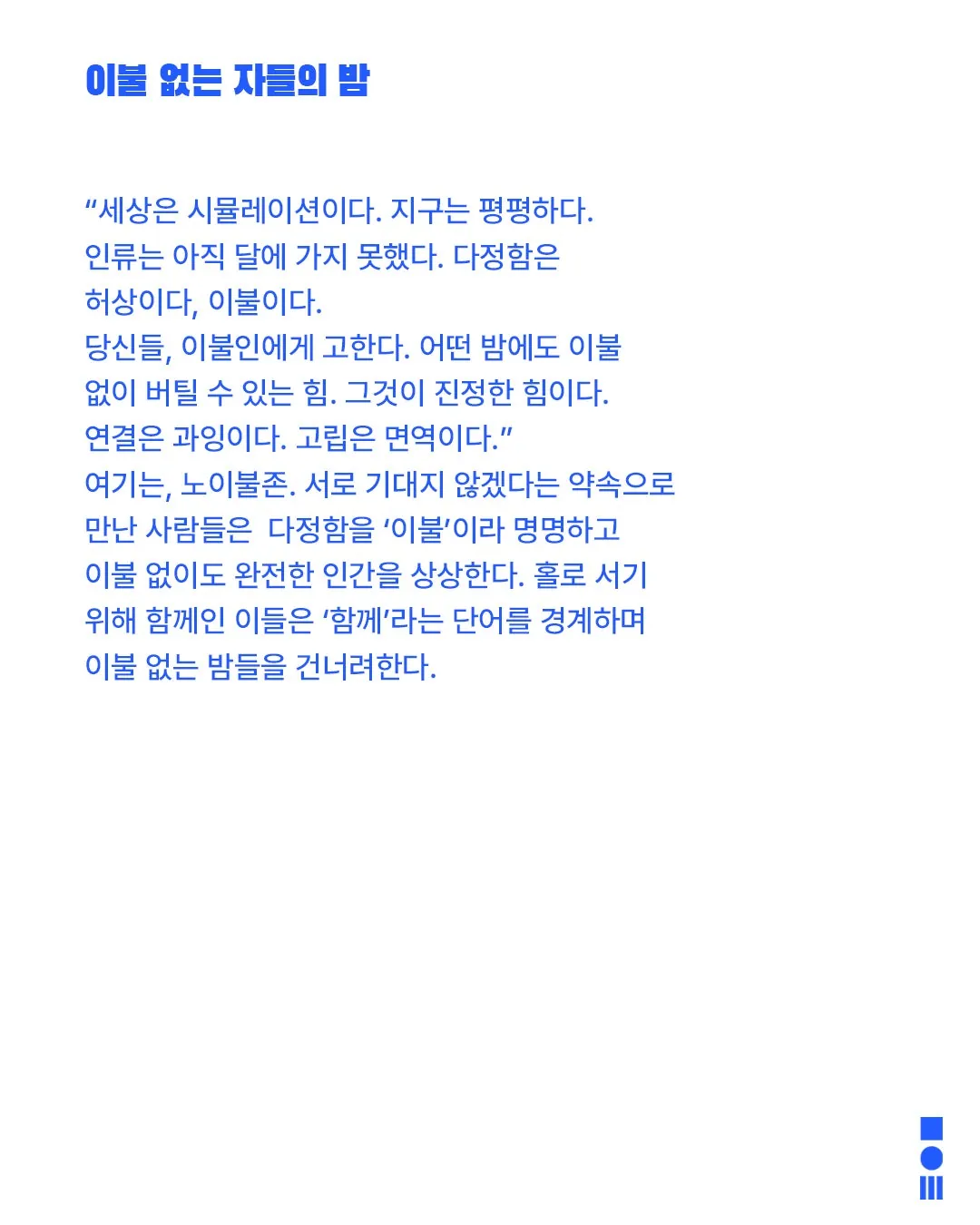안전 연극제: 면역력, 이불 없는 자들의 밤