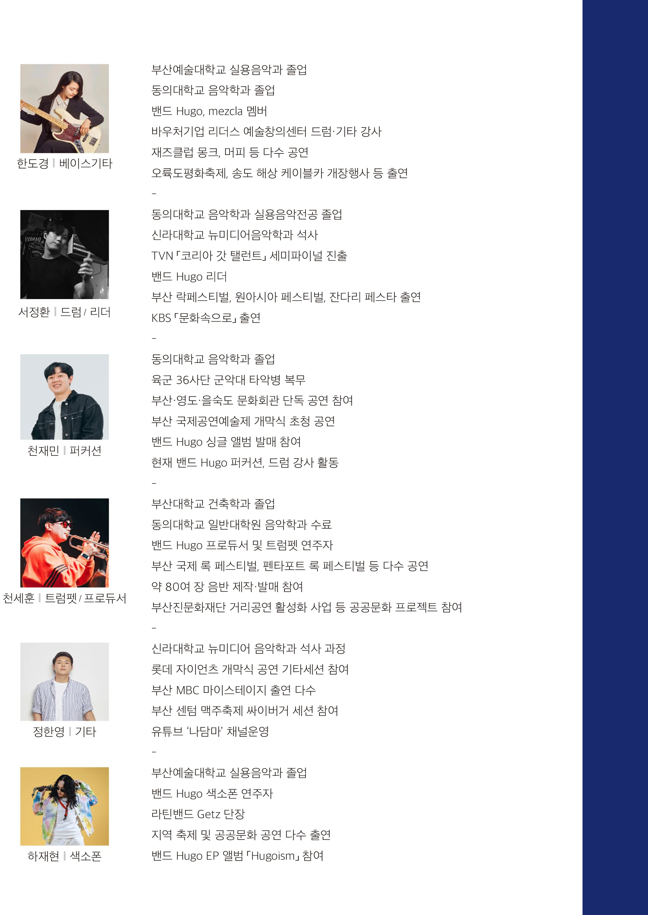이혜지, 박찬일, 신진호, 한도경, 서정환, 천재민, 천세훈 등