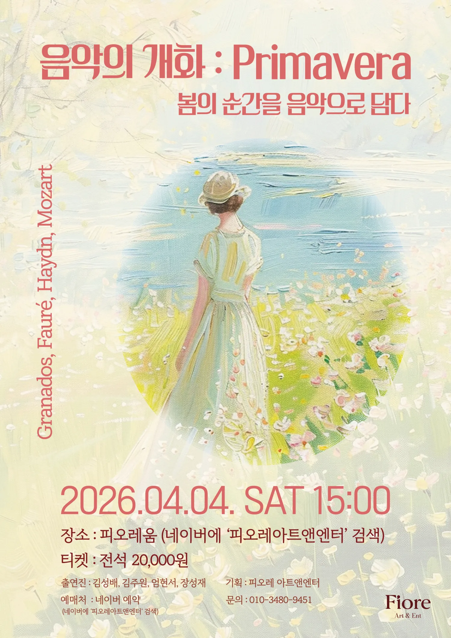 봄날의 산뜻함을 전달하는 모차르트와 그라나도스를 지나, 화성적으로 풍부한 하이든, 따스함 속 피어나는 침착함을 느끼게 하는 포레까지. 다채로운 레퍼토리를 통해 따스한 4월에 활짝 피어나는 음악을 들려드릴 예정입니다.