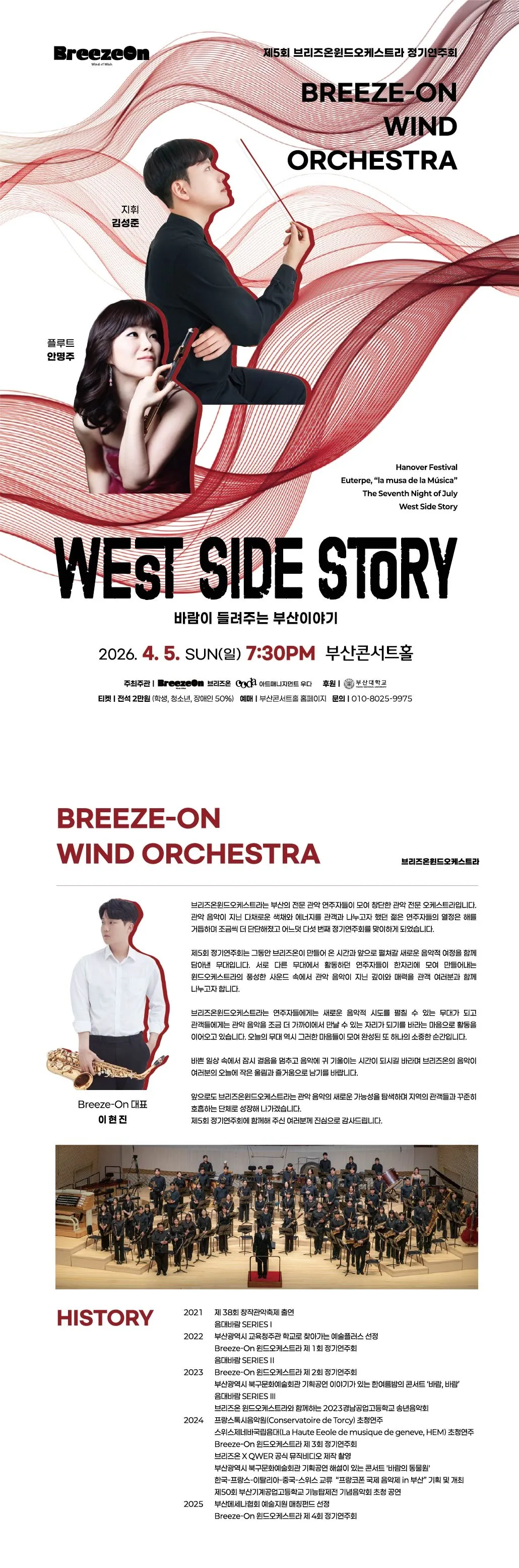 • 제5회 브리즈온 윈드오케스트라 정기연주회: 바람이 들려주는 부산이야기제5회 브리즈온 윈드오케스트라 정기연주회: 바람이 들려주는 부산이야기