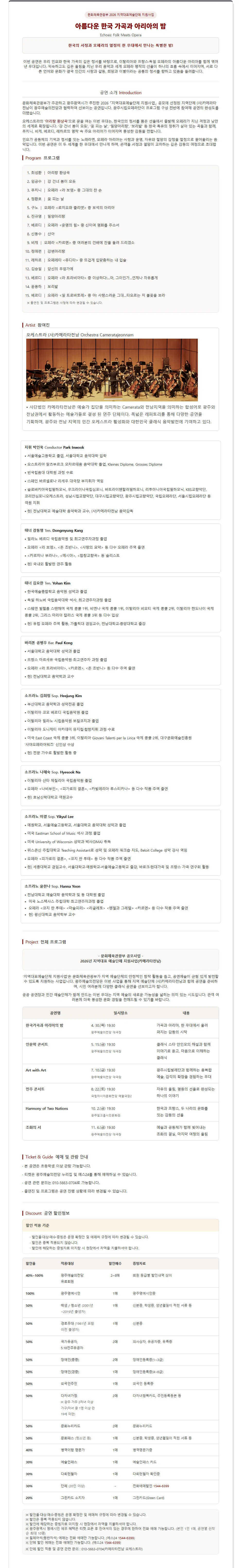 해당 공연은 공연예술통합전산망에서 제공되었으며, 통신판매의 당사자가 아니므로 상품의 예약, 이용 및 환불 등 거래와 관련하여 틱스코리아는 일체 책임을 지지 않습니다.