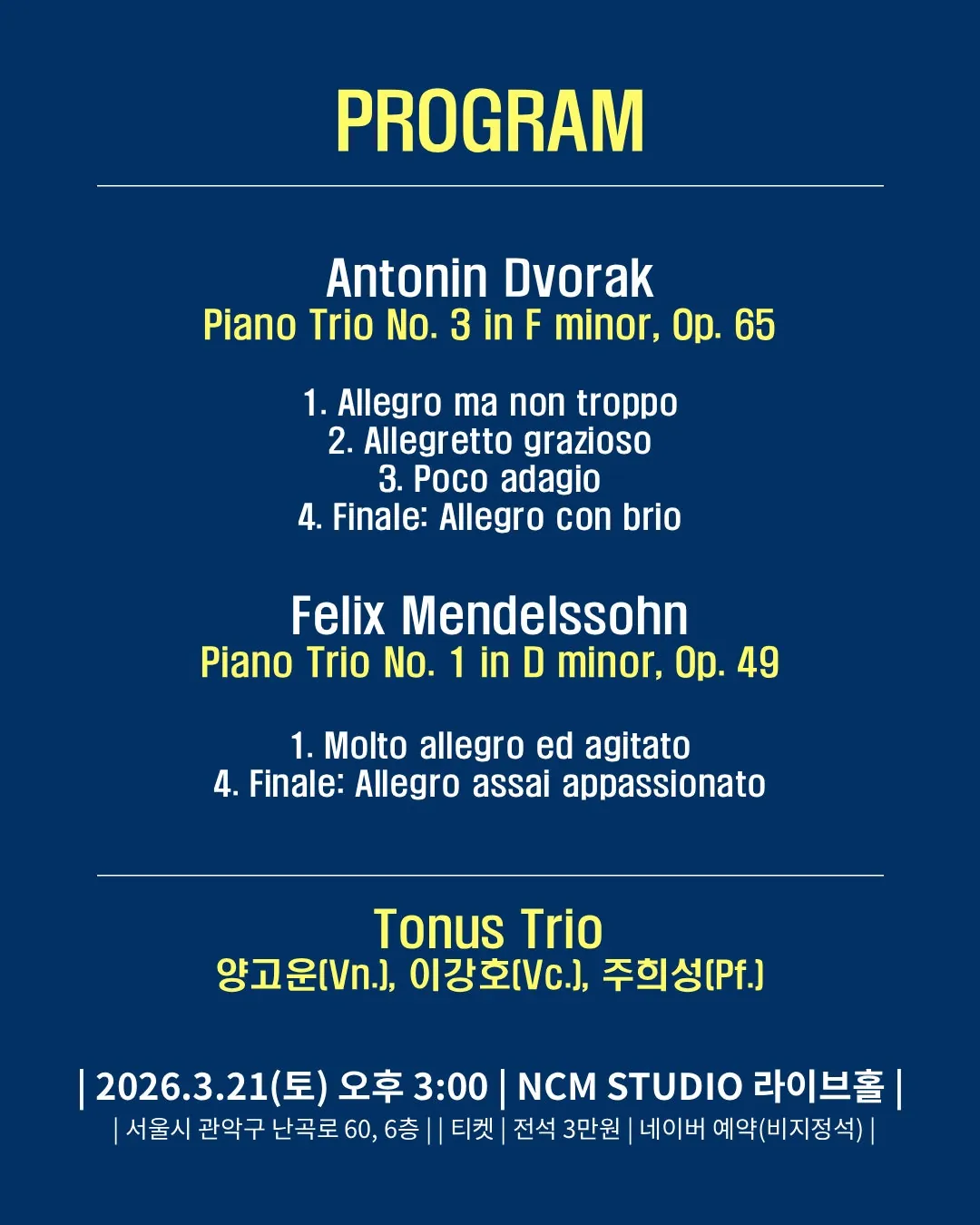 • 토너스 트리오 멘델스존 음반 발매 쇼케이스: Mendelssohn Piano Trios No.1 & 2토너스 트리오 멘델스존 음반 발매 쇼케이스: Mendelssohn Piano Trios No.1 & 2