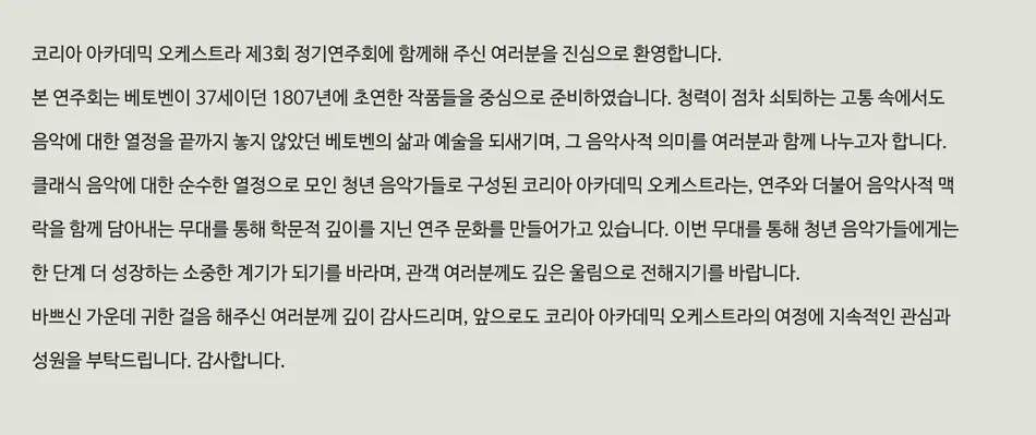 • 제3회 코리아 아카데믹 오케스트라 정기연주회제3회 코리아 아카데믹 오케스트라 정기연주회제3회 코리아 아카데믹 오케스트라 정기연주회