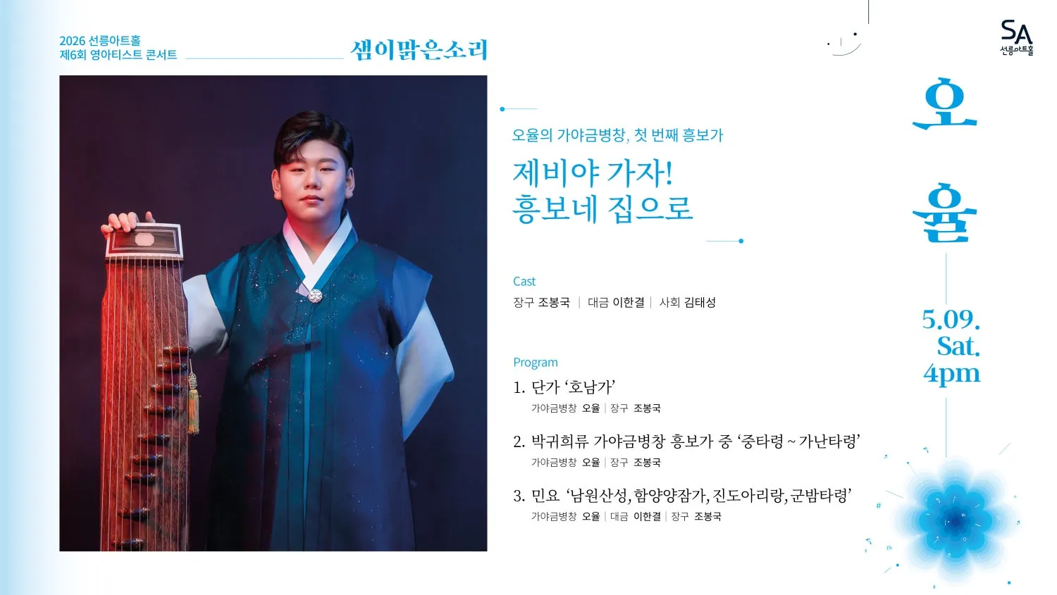 • 제6회 샘이맑은소리, 오율의 가야금병창: 첫 번째 흥보가제6회 샘이맑은소리, 오율의 가야금병창: 첫 번째 흥보가