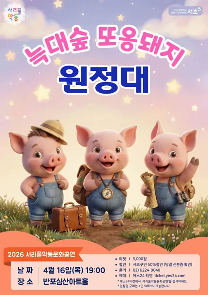 • 서리풀 악동문화공연, 아기돼지 삼형제: 늑대숲 또옹돼지 원정대 (4월)