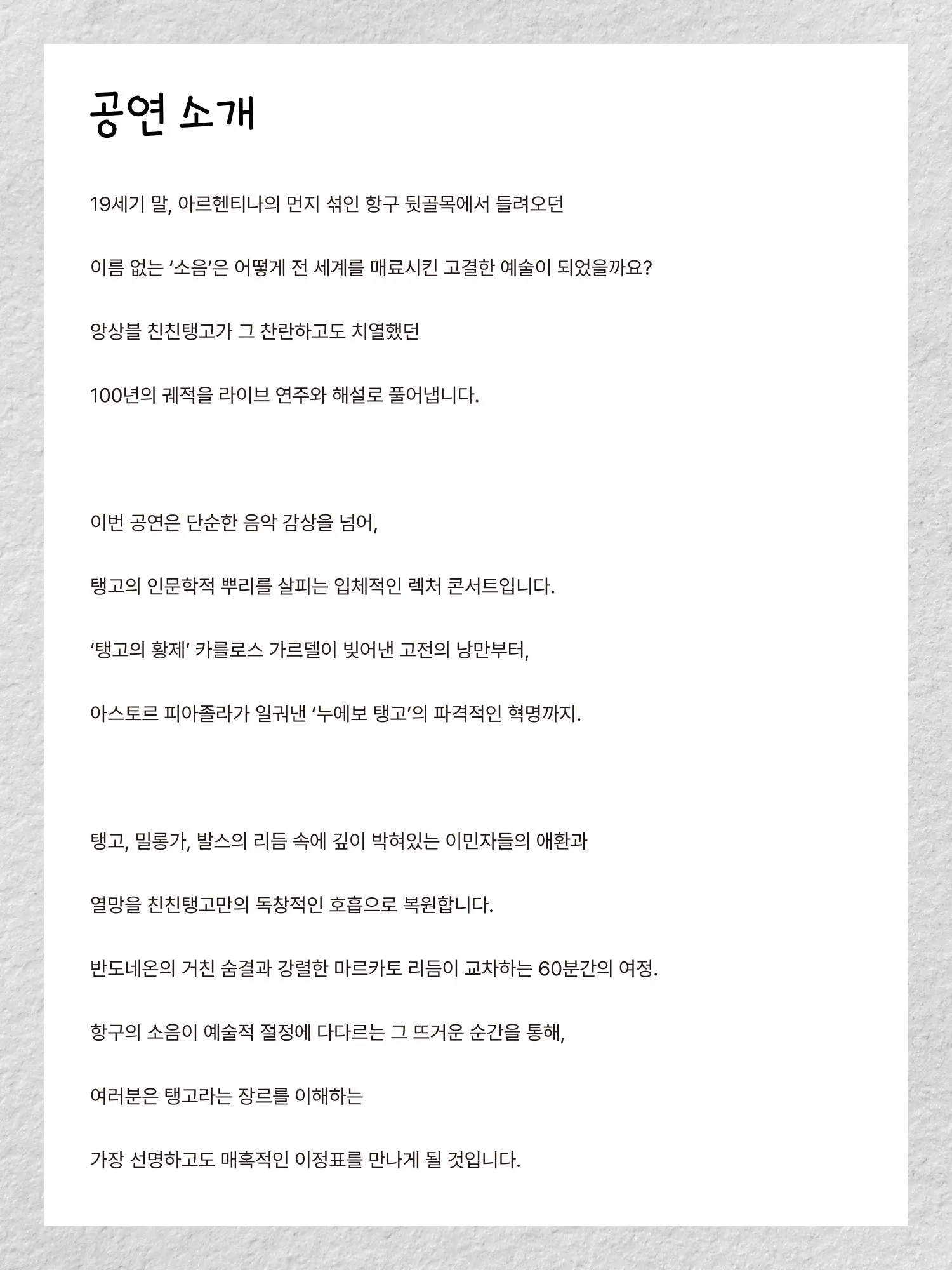 • 센텀아트홀 기획공연, 친친탱고와 함께하는 렉쳐콘서트: 탱고의 역사 [부산]센텀아트홀 기획공연, 친친탱고와 함께하는 렉쳐콘서트: 탱고의 역사 [부산]센텀아트홀 기획공연, 친친탱고와 함께하는 렉쳐콘서트: 탱고의 역사 [부산]