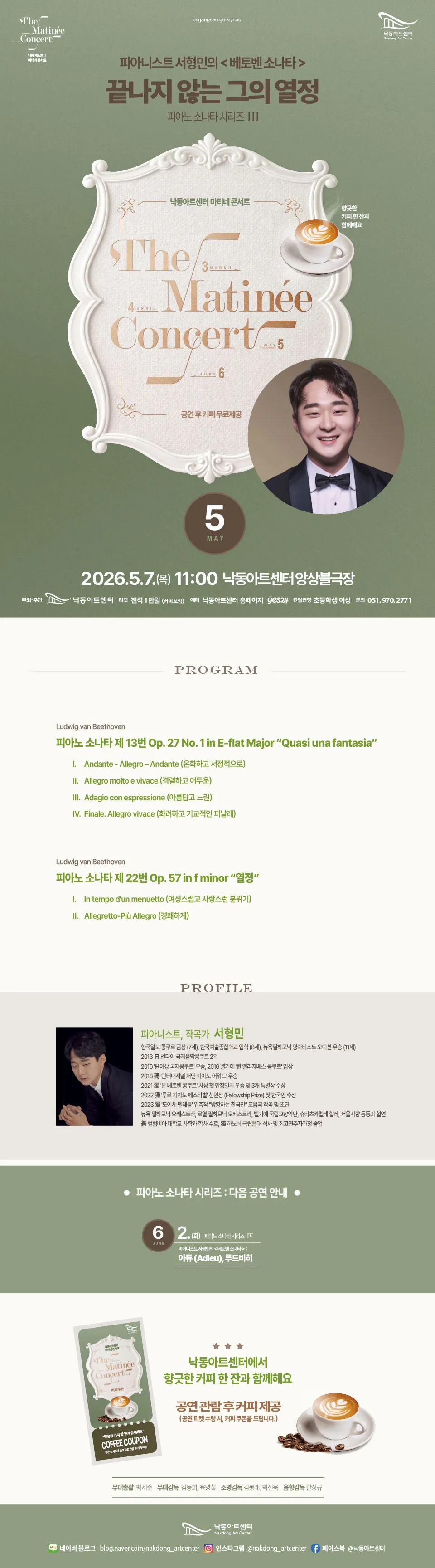 • 낙동아트센터 마티네 콘서트, 피아노 소나타 시리즈 Ⅲ. 피아니스트 서형민의 베토벤소나타: 끝나지 않는 그의 열정 [부산]