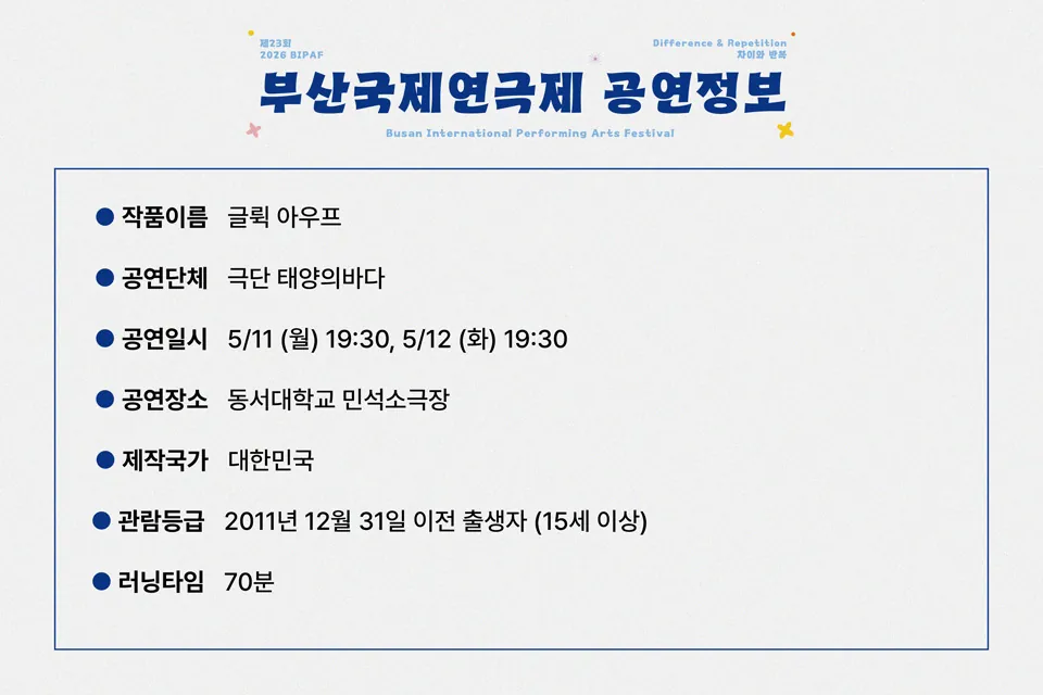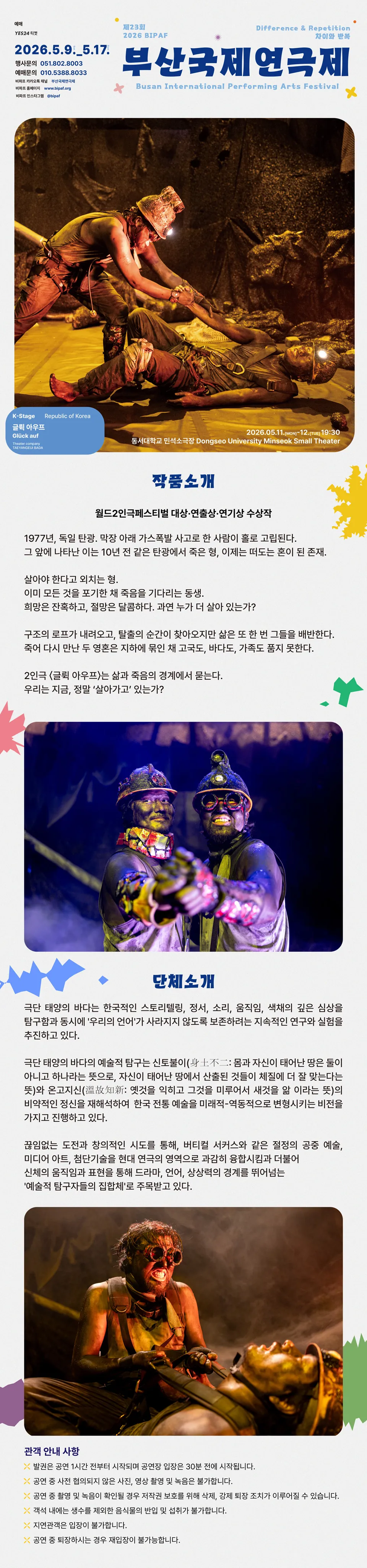 • 제23회 부산국제연극제, 글뤽 아우프 (Gluck auf)제23회 부산국제연극제, 글뤽 아우프 (Gluck auf)제23회 부산국제연극제, 글뤽 아우프 (Gluck auf)