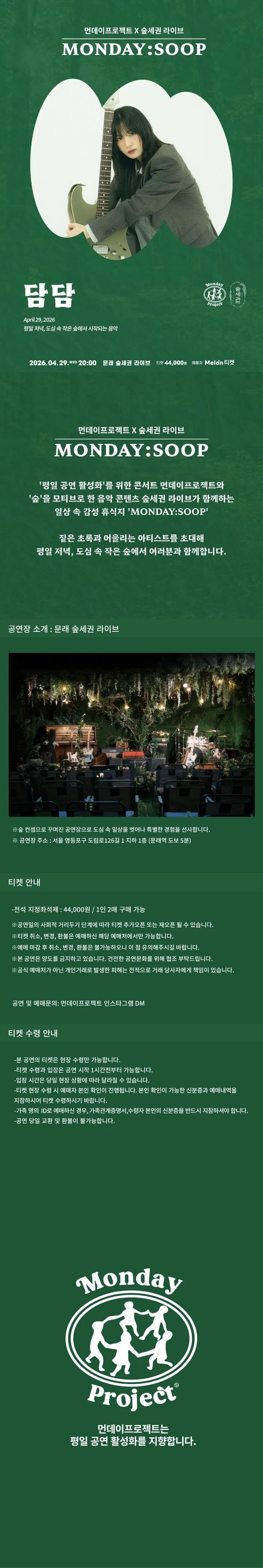 • 먼데이프로젝트 X 숲세권 MONDAY: SOOP, 담담 단독 콘서트