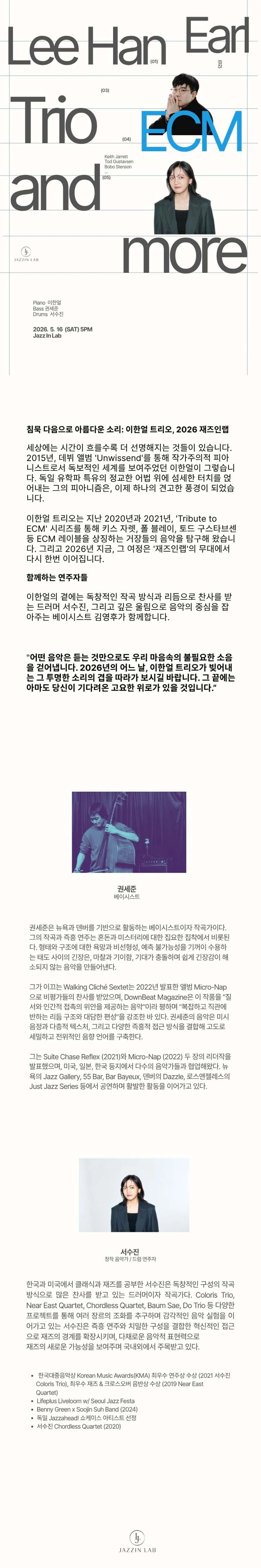 • 재즈의 두 가지 숨결: ECM X 이한얼 트리오 [세종]