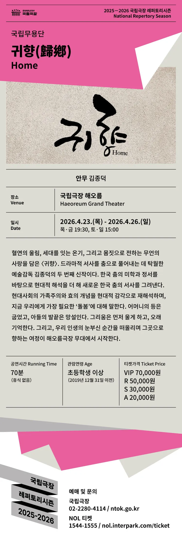 해당 공연은 공연예술통합전산망에서 제공되었으며, 통신판매의 당사자가 아니므로 상품의 예약, 이용 및 환불 등 거래와 관련하여 틱스코리아는 일체 책임을 지지 않습니다.