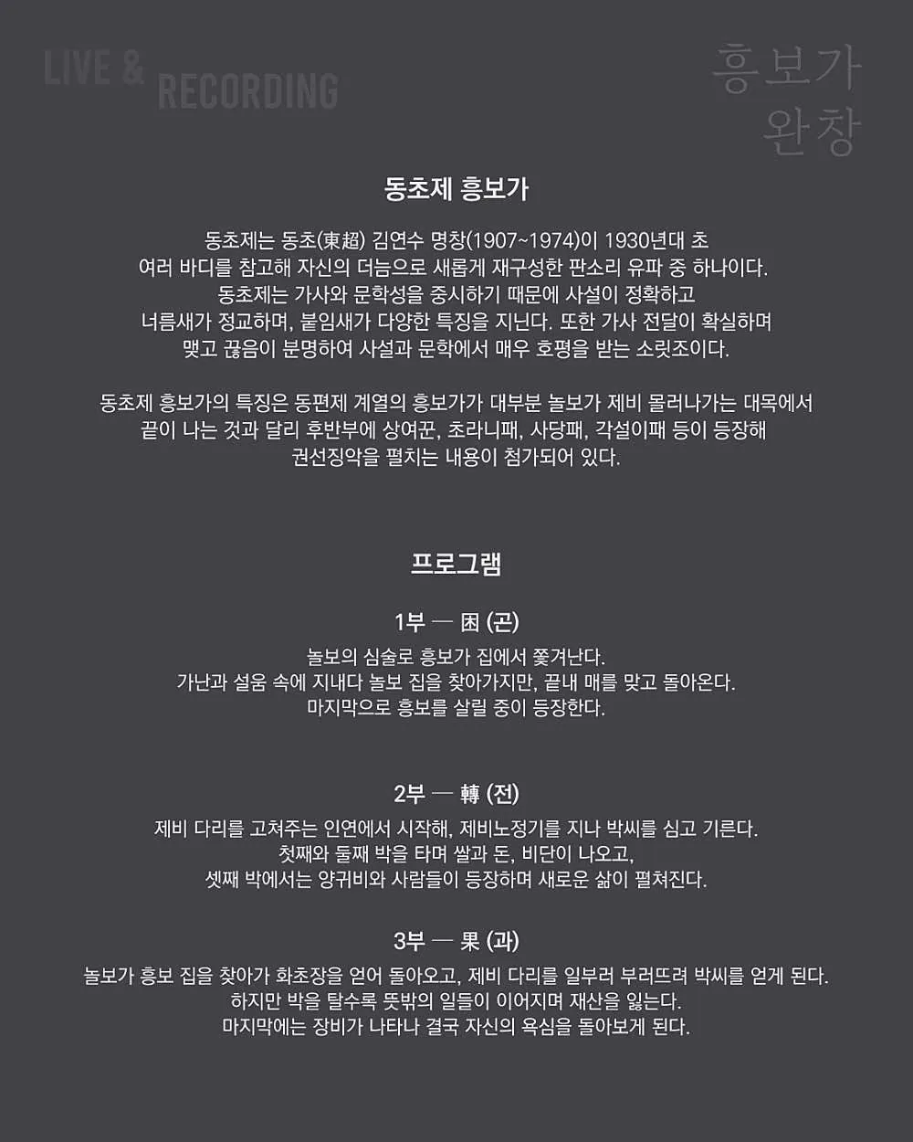 • LIVE & RECORDING, 김나니 흥보가 완창LIVE & RECORDING, 김나니 흥보가 완창LIVE & RECORDING, 김나니 흥보가 완창