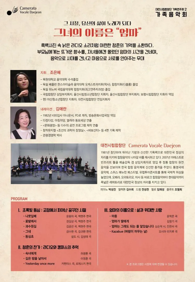 • 대전시립합창단 기획연주회 2, 가족음악회: 그녀의 이름은 엄마대전시립합창단 기획연주회 2, 가족음악회: 그녀의 이름은 엄마