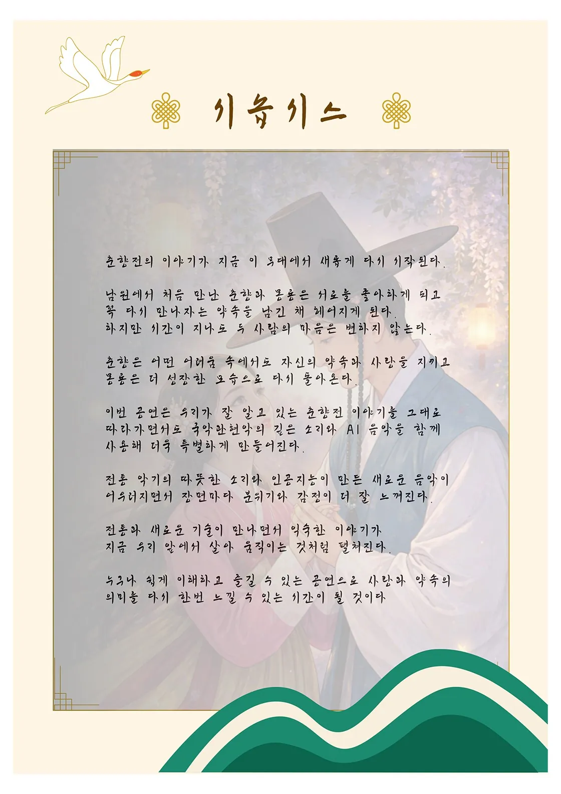 해당 공연은 공연예술통합전산망에서 제공되었으며, 통신판매의 당사자가 아니므로 상품의 예약, 이용 및 환불 등 거래와 관련하여 틱스코리아는 일체 책임을 지지 않습니다.