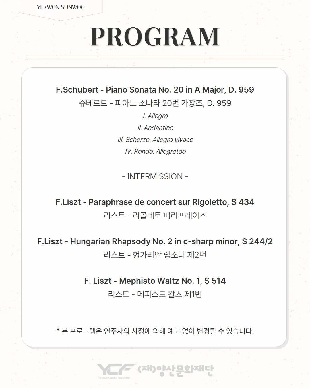 • 선우예권 피아노 리사이틀 [앙산]선우예권 피아노 리사이틀 [앙산]선우예권 피아노 리사이틀 [앙산]선우예권 피아노 리사이틀 [앙산]선우예권 피아노 리사이틀 [앙산]