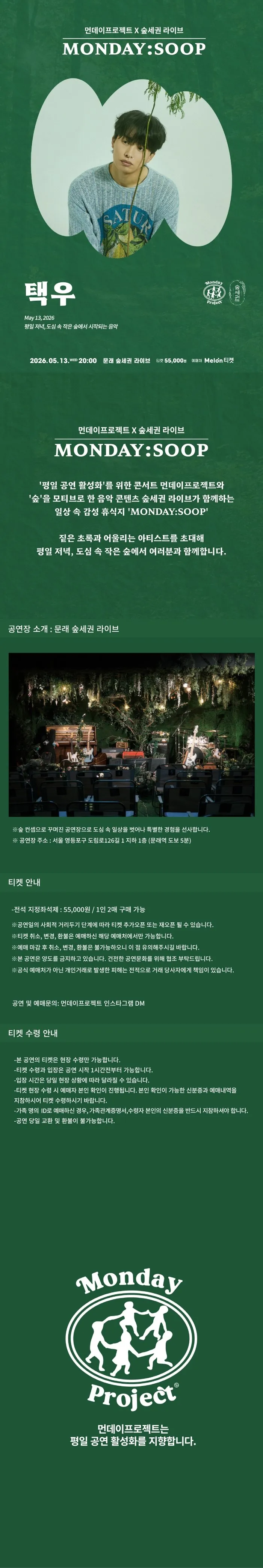 • 먼데이프로젝트 X 숲세권 MONDAY: SOOP, 택우 단독 콘서트