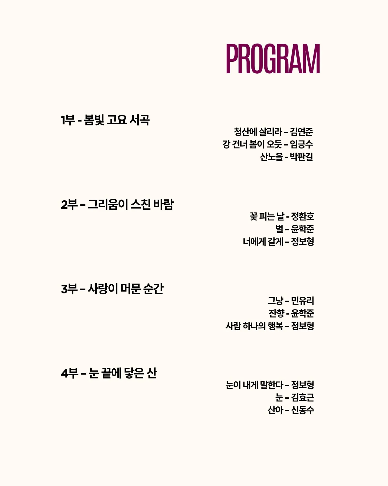 • 곁에 두는 음악 Series 9. 곁에 두는 한국 가곡 콘서트: 노래로 건너는 계절곁에 두는 음악 Series 9. 곁에 두는 한국 가곡 콘서트: 노래로 건너는 계절곁에 두는 음악 Series 9. 곁에 두는 한국 가곡 콘서트: 노래로 건너는 계절