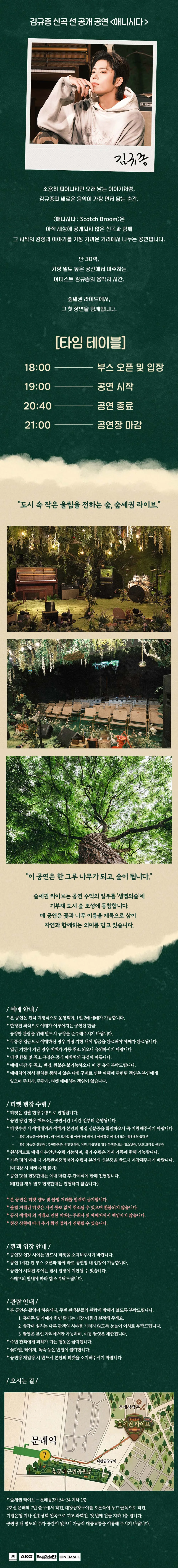 • 숲세권 라이브, 김규종 선공개 공연 애니시다: ScotchBroom 쇼케이스숲세권 라이브, 김규종 선공개 공연 애니시다: ScotchBroom 쇼케이스