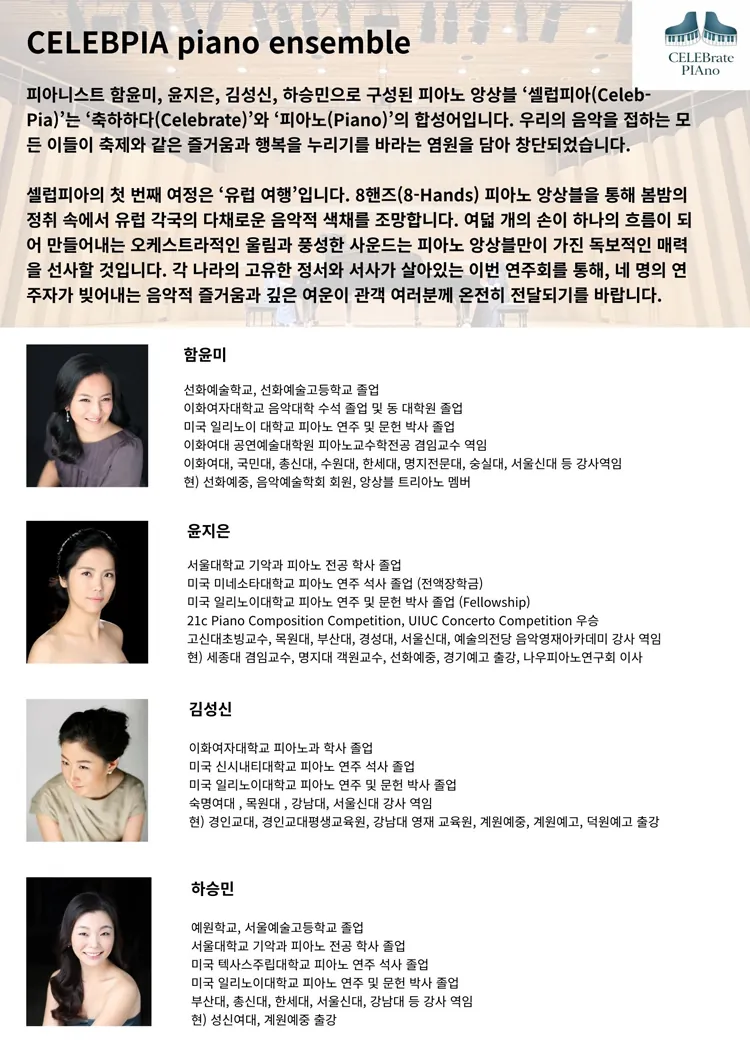 • 셀럽피아 앙상블 연주회, 여행 I: 유럽셀럽피아 앙상블 연주회, 여행 I: 유럽셀럽피아 앙상블 연주회, 여행 I: 유럽
