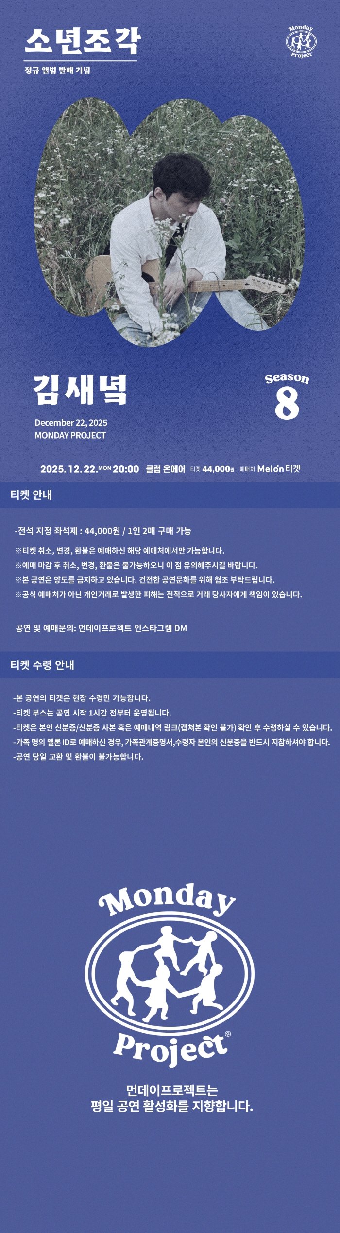 • 먼데이프로젝트 시즌8, 김새녘 정규 앨범 발매 단독 콘서트: 소년조각