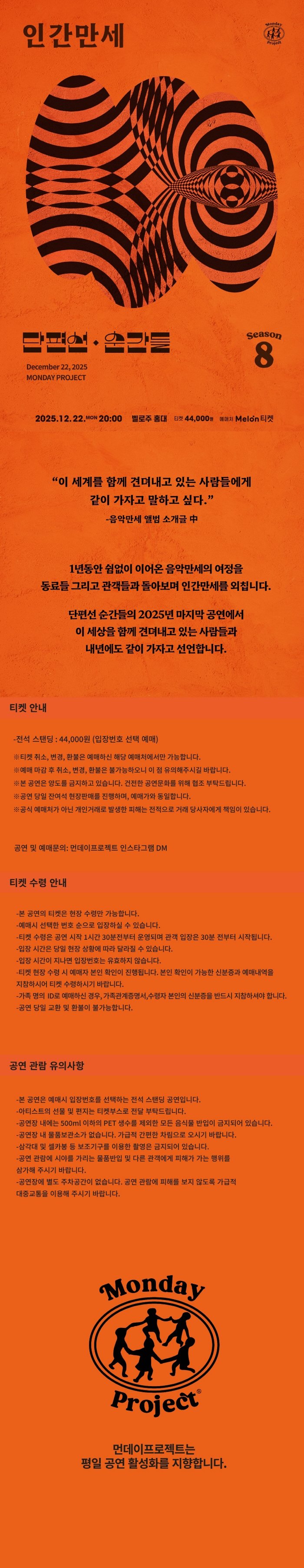 • 먼데이프로젝트 시즌8: 단편선 순간들 연말 단독 콘서트, 인간만세
