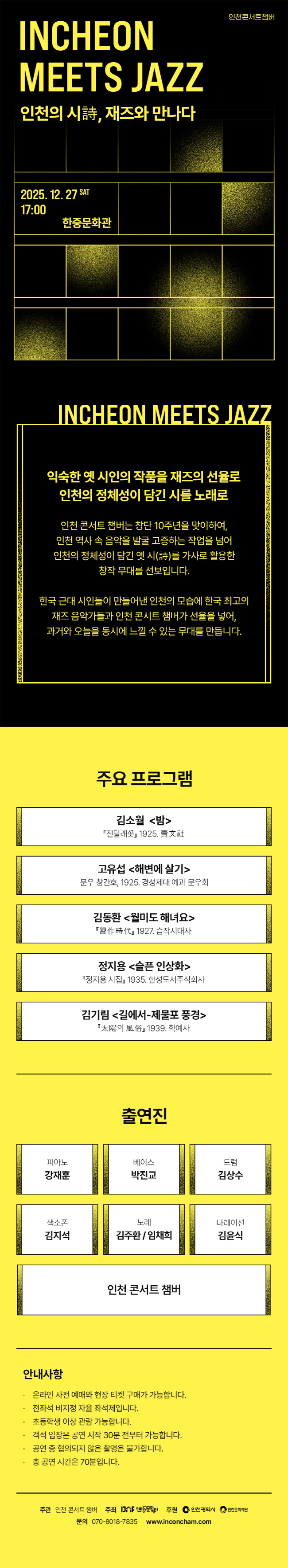 • INCHEON MEETS JAZZ: 인천의 시, 재즈를 만나다INCHEON MEETS JAZZ: 인천의 시, 재즈를 만나다