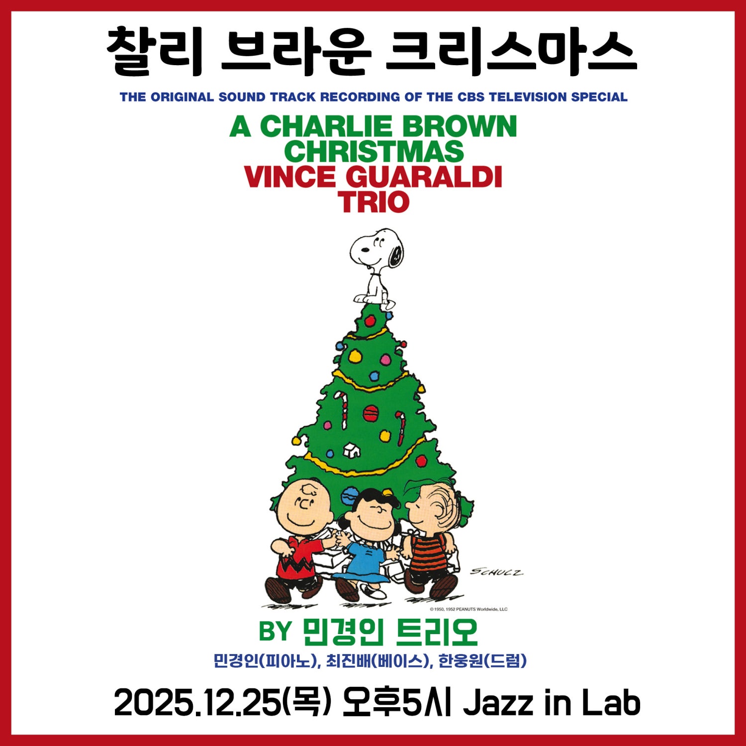 빈스 과랄디의 A Charlie Brown Christmas 앨범을 국내를 대표하는 재즈 피아니스트 민경인 트리오가 연주합니다.