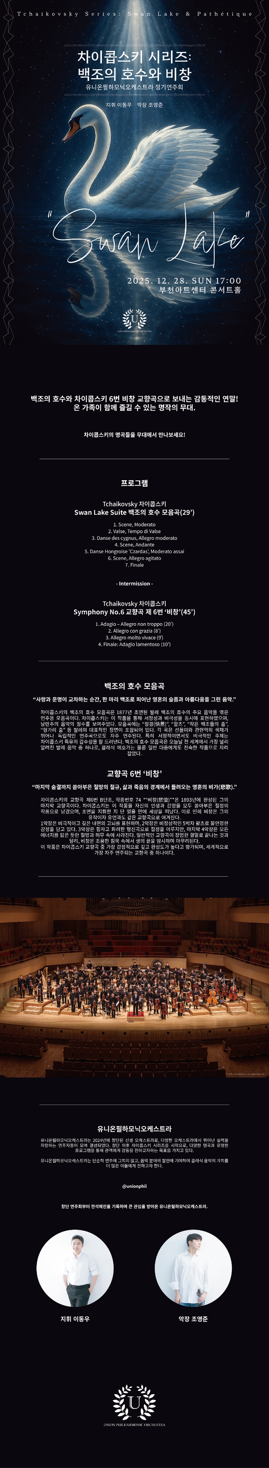 • 유니온필하모닉오케스트라 정기연주회, 차이콥스키 시리즈: 백조의 호수와 비창