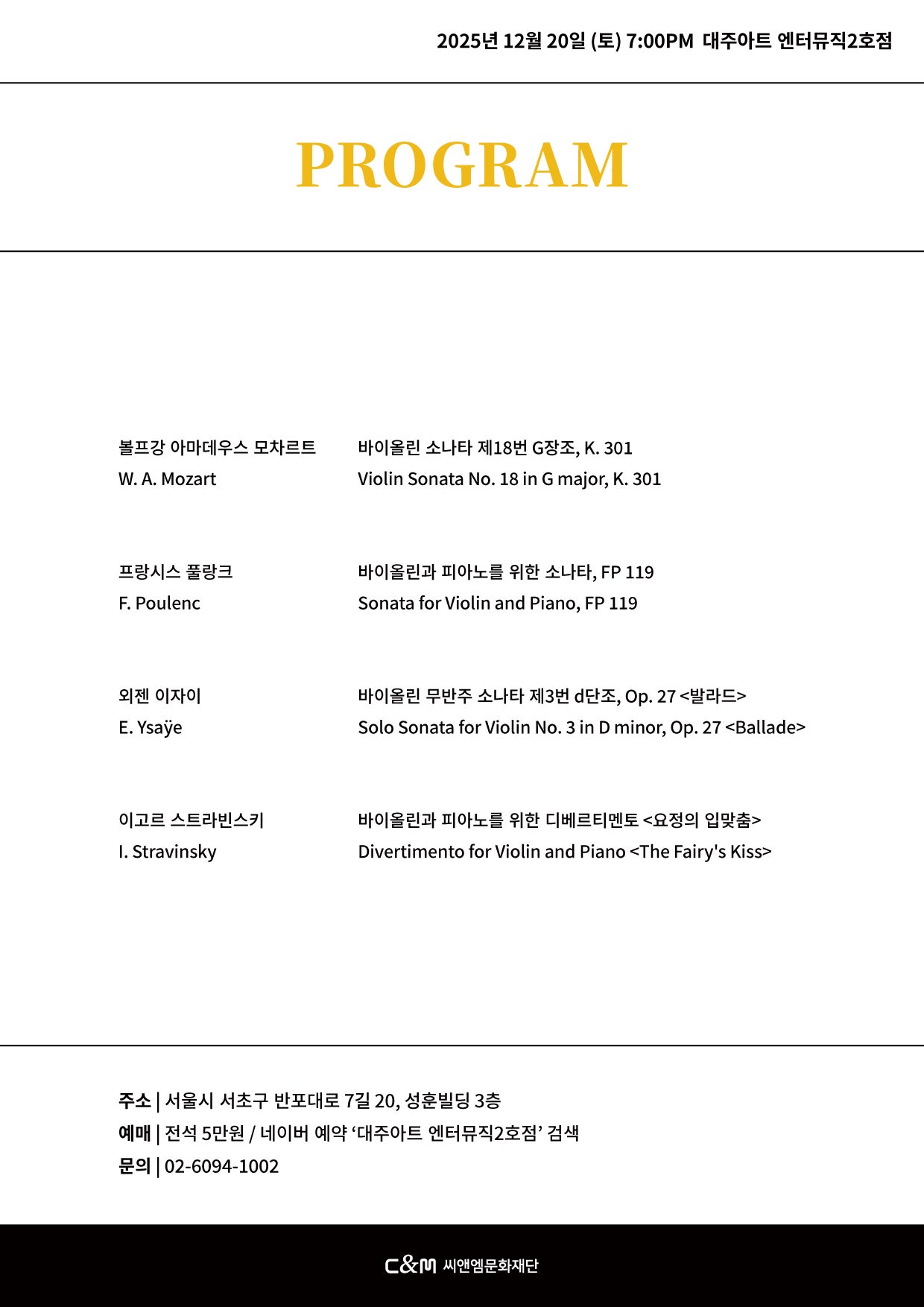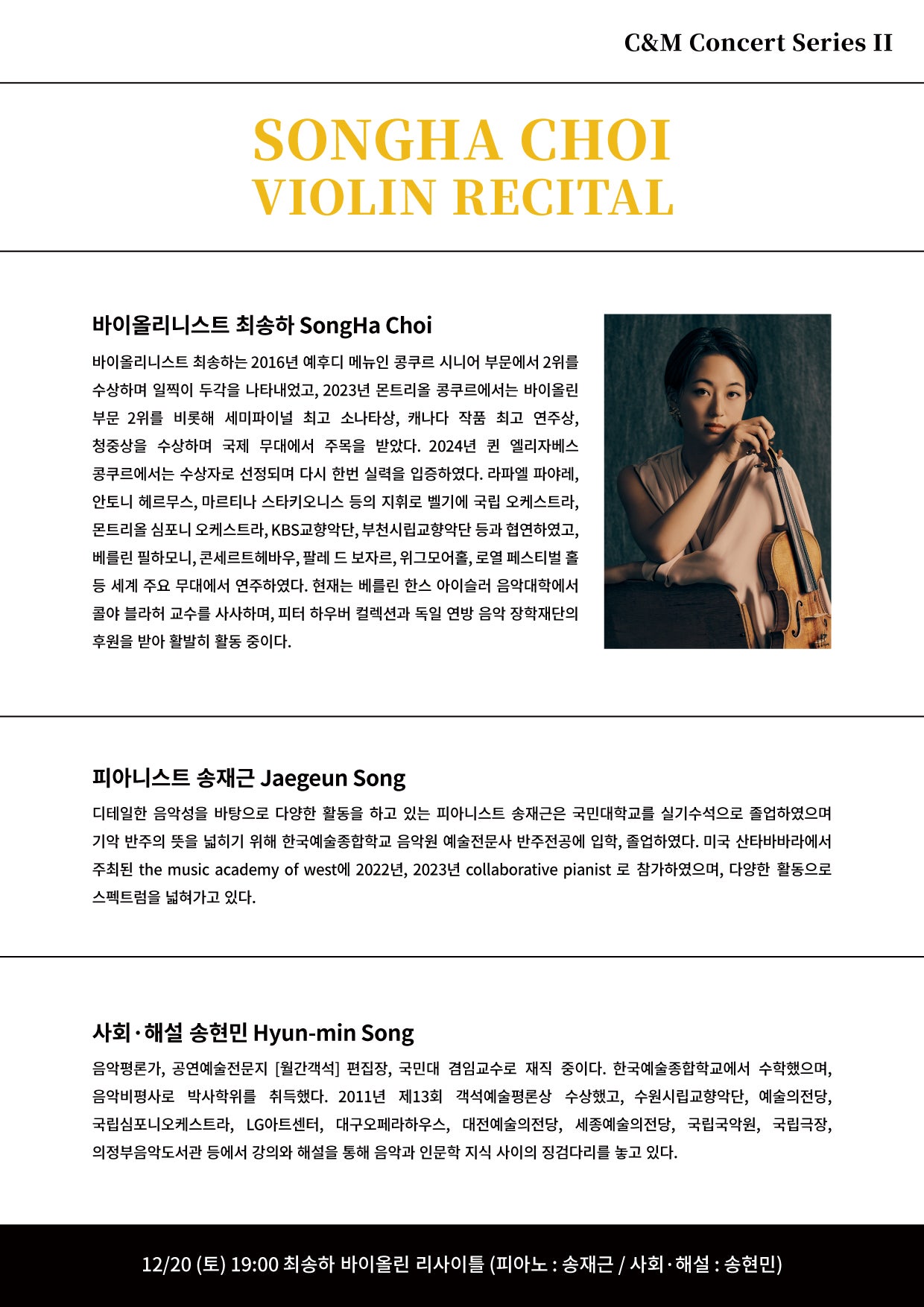 • C&M 콘서트시리즈 II: 최송하 바이올린 리사이틀C&M 콘서트시리즈 II: 최송하 바이올린 리사이틀C&M 콘서트시리즈 II: 최송하 바이올린 리사이틀