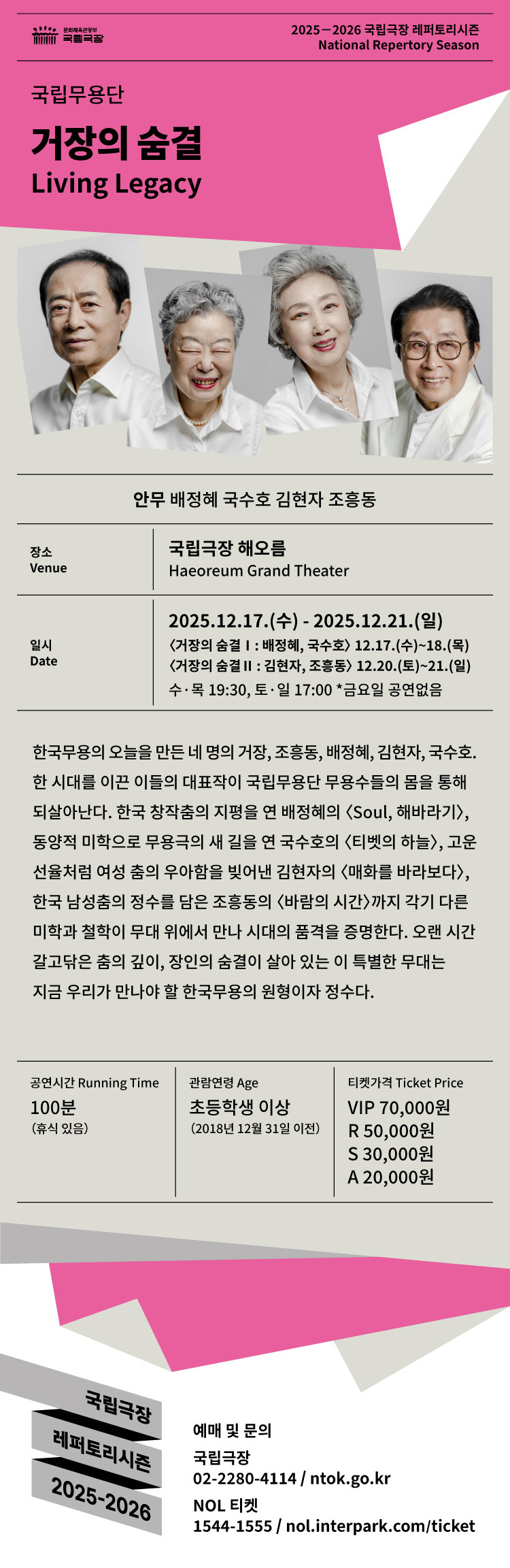 • 국립무용단, 거장의 숨결 Ⅱ: 김현자, 조흥동 [서울]국립무용단, 거장의 숨결 Ⅱ: 김현자, 조흥동 [서울]