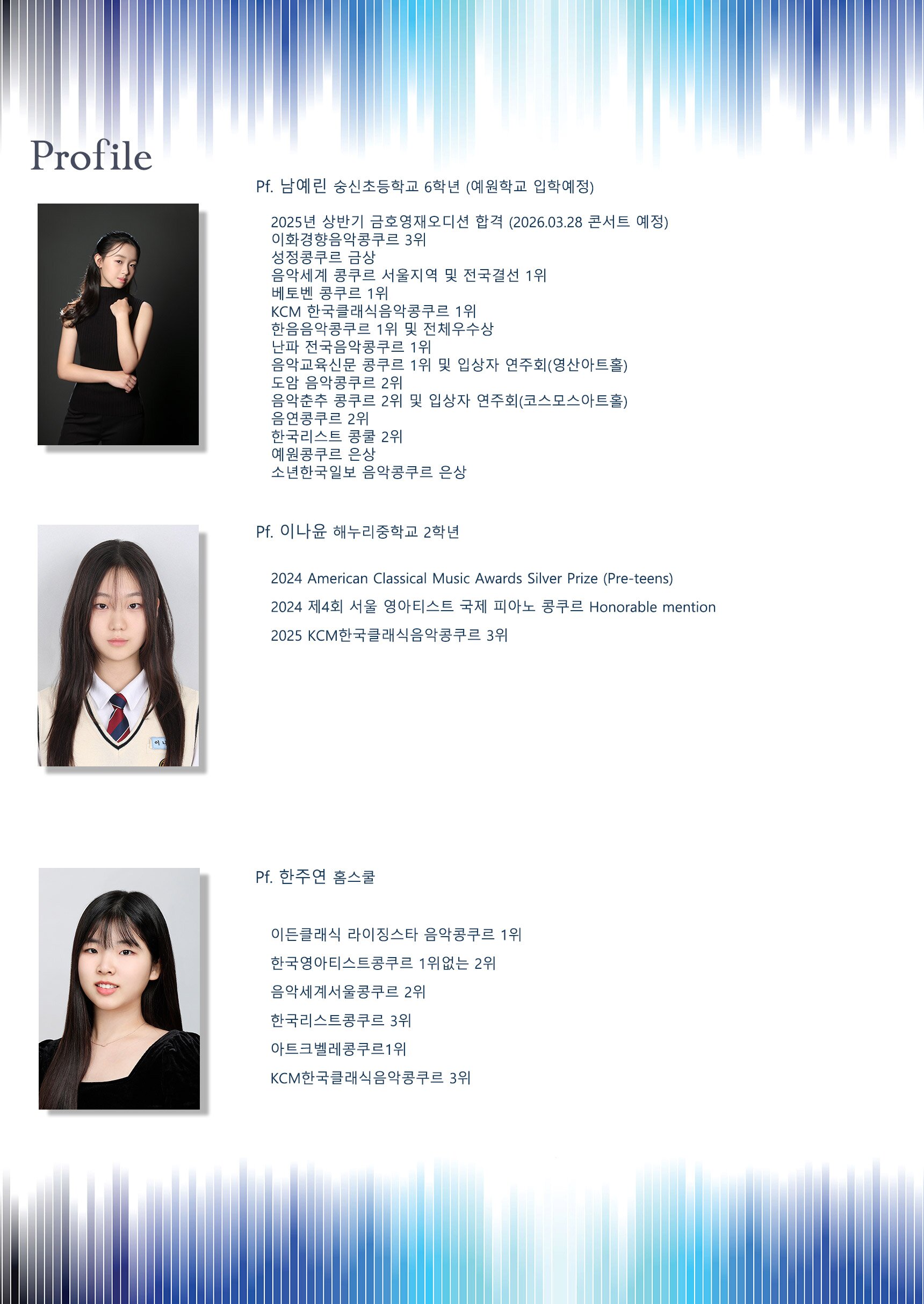 루이스 레이나, 문로아, 정훤, 남예린, 이나윤, 한주연, 장호수 등