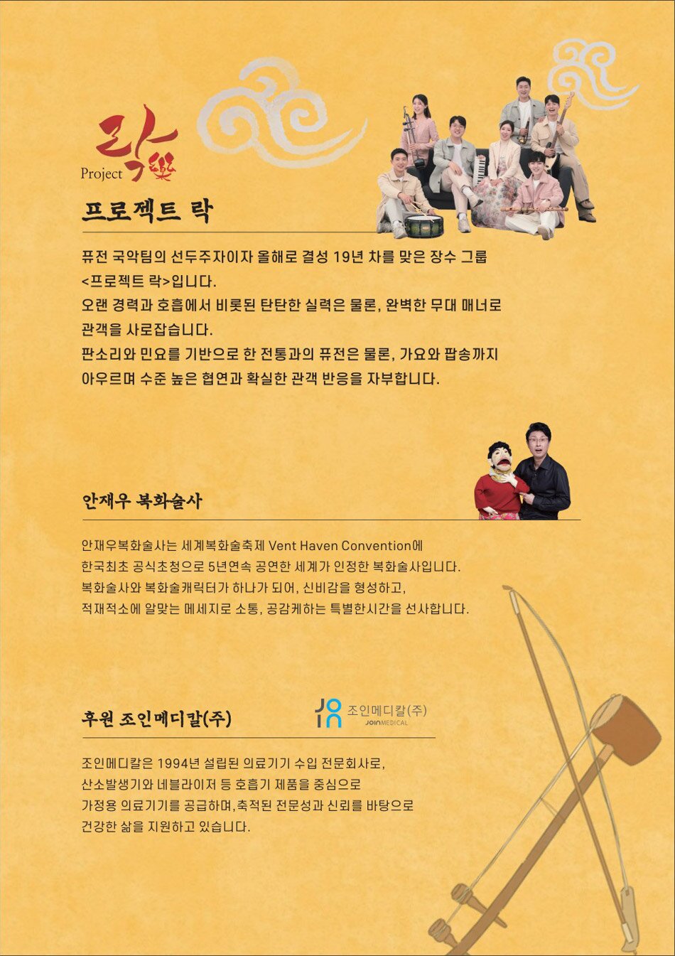 해당 공연은 공연예술통합전산망에서 제공되었으며, 통신판매의 당사자가 아니므로 상품의 예약, 이용 및 환불 등 거래와 관련하여 틱스코리아는 일체 책임을 지지 않습니다.
