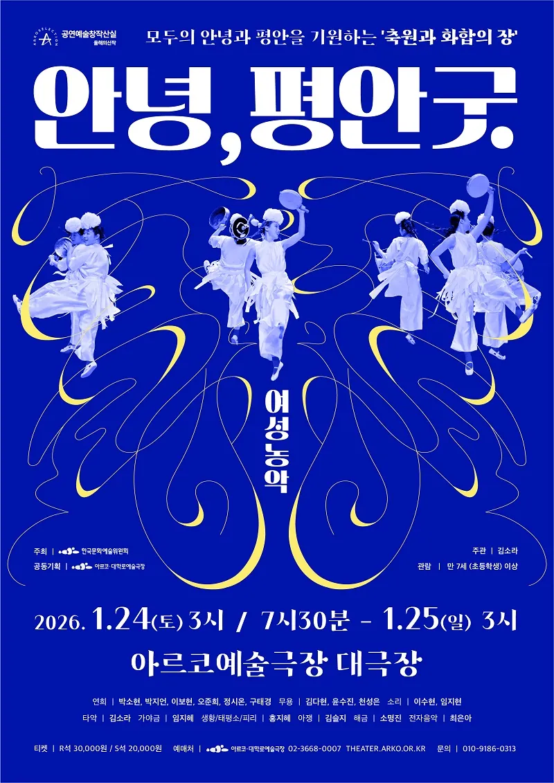 ‘여성농악-안녕, 평안굿‘은 전통 농악 속에서 간과되었던 여성 연희자의 역할과 기여를 다시 비추고, 그들의 강인함과 공동체적 가치를 현대적 감각으로 재해석한 창작농악이다.