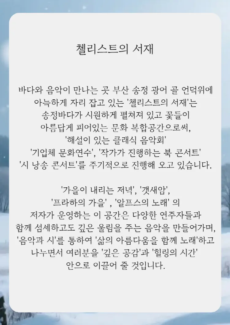 • 지브리 하우스 콘서트: 당신이 듣고싶던 곡들 [부산]지브리 하우스 콘서트: 당신이 듣고싶던 곡들 [부산]지브리 하우스 콘서트: 당신이 듣고싶던 곡들 [부산]지브리 하우스 콘서트: 당신이 듣고싶던 곡들 [부산]지브리 하우스 콘서트: 당신이 듣고싶던 곡들 [부산]
