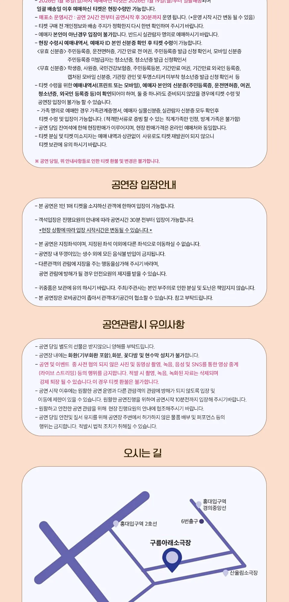 해당 공연은 공연예술통합전산망에서 제공되었으며, 통신판매의 당사자가 아니므로 상품의 예약, 이용 및 환불 등 거래와 관련하여 틱스코리아는 일체 책임을 지지 않습니다.